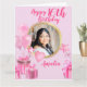 Rosa com presentes e balões com cartão de aniversário de fotografia redondo, adequado para raparigas