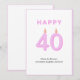 Cartão Rosa da placa aniversário de 40 anos
