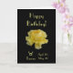 Uma foto de uma bela rosa amarela sobre fundo preto. "Feliz Aniversário"; Símbolo da sigla de nascimento Taurus e das datas horóscopo- 20 de abril a 20 de maio. Mensagem dentro: "Desejando-lhe um belo dia!" Personalize sua mensagem! Fotografia de Maria Santos - Lusinhas do Sul