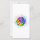 Rosa grande e florescente com pétalas arco-íris sobre fundo branco, pintadas com pedaços de tinta colorida e brilhante. 3d