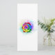 Rosa grande e florescente com pétalas arco-íris sobre fundo branco, pintadas com pedaços de tinta colorida e brilhante. 3d