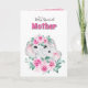 Uma bela ilustração de um lindo elefante-mãe de desenho animado com orelhas cor-de-rosa agarrando seu filhote ao peito. Ela tem lindas rosas rosa na cabeça e está sentada em um buquê de rosa com folhas verdes. O bebê tem um arco de fita cor-de-rosa e rosa flor amarrados ao seu pequeno ouvido. As palavras, para uma mãe muito especial (que pode ser mudada para mãe, mãe, múmia, múmia, filha etc.) aparecem num fundo branco e o dentro tem um modelo para a sua mensagem personalizada colocada contra um fundo brilhante de cintilação a rosa macio.
