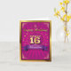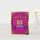 Um cartão de saudação doce dezesseis que é reminiscente de um pôster de concerto ou circo. Um medalhão envolve as palavras douradas "Doce 16" no topo de um fundo rosa explosão. As palavras "Feliz Aniversário" são escritas acima e o nome da aniversariante se destaca abaixo no banner roxo brilhante. Um cartão de aniversário divertido para aquela adolescente especial de Doce 16. Disponível com produtos correspondentes.