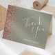 Este elegante e moderno cartões de agradecimentos de casamento apresenta uma borda de falso ouro rosa num fundo verde sábio. O texto personalizável combina as palavras "Obrigado" no guião creme e os nomes da noiva e do noivo em itálico.