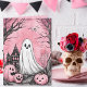 Perfeito para aqueles que amam rosa, esta carta bonita apresenta um fantasma branco, abóboras rosa e céu rosa. O texto de exemplo de dentro diz: "Rosa é a nova laranja. Feliz Dia das Bruxas." Clique em "Personalizar este Modelo" para alterar ou remover facilmente o texto em destaque.