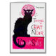 Cartão francês do poster do gato do vintage cor-de-rosa e preto.