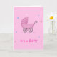Cartão único para dar boas-vindas a um bebê menino no mundo. Projetado em rosa.