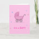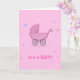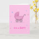 Cartão único para dar boas-vindas a um menino ao mundo. Desenhado em rosa.
