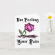 Este desenho de flor apresenta uma simples rosa rosa solitária murchando em desespero com as palavras “Estou sentindo sua dor,” em tipografia mórbida. Algumas pessoas podem sentir a dor dos outros, mas as palavras por si só nem sempre expressam isso. Esta é uma maneira de expressar visualmente sua angústia pelo desespero dos outros. Este design é para qualquer pessoa que seja visualmente poética ou que esteja apenas em um humor melancólico.