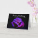Cartão Rosa Roxa Com Gotículas de Orvalho Feliz Aniversár
