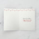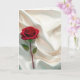 Uma rosa vermelha fica graciosamente sobre um tecido suave e branco de cetim com um fio de pérolas. O texto do dentro pode ser alterado.