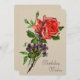 Um cartão de saudação do shimmer de pérolas de 5" x 7" com uma imagem de vintage de uma bela rosa vermelha no cheio, dois rosa e violetas no bege. O sentimento diz, "Desejos de Aniversário." O fundo é creme com uma imagem de botões de rosa vermelha e um sentimento personalizável que lê, "Que cada aniversário traga alegria." Ver etiqueta de presente, etiqueta, adesivo retangular e vinheta de vinilo cortada por medida. Veja toda a coleção de Convite de Aniversário nos CONVITES | Seção Convites e Cartões.