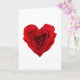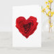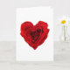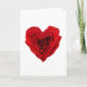 Ilustração romântica encantadora apresentando uma rosa vermelha em flor em forma de coração com gotas de água em um fundo branco limpo.
