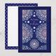 Desenho de uma janela de vidro manchado semelhante à de uma antiga catedral europeia: a base desse padrão é uma janela rosa, com toques de várias cores, incluindo tons de azul, sobre um fundo azul marinho. Inclusões de rochas azuis (desenhadas). Este design também está disponível em vermelho cardinal em minhas coleções "cor vermelha cardinal" >> clique em "Lyne_Fairies" logo abaixo, em "Collections" para encontrar todas as minhas criações 😊. (sem AI)