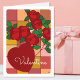 Para o seu Namorados, uma bela ilustração em vidro colorido de um coração vermelho, rosas vermelhas num fundo de quadrados multicoloridos. A palavra Namorados está em uma fonte de script colorido na frente. Dentro: Vazio