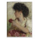 Uma menina triguenha bonito guardara para fora uma rosa vermelha. Eu penso que é um florista. É inglesa em 1900s adiantados dos aldeões de George.