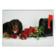 Um Cavalier preto e tan adorável está entregando rosas vermelhas.