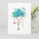 Chave de ouro antiga com rosas de turquesa de tendência, decoradas com folhas de ouro branco e miçangas cor-de-rosa e azuis. Cor agradável. Rosas de turquesa. Ouro branco. Tifania azul.