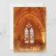 Cartão comemorativo com foto do interior de Rosslyn Chapel, vidro colorido e altar.