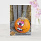 Cartão rosto engraçado na abóbora pintada de Halloween
