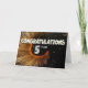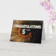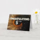 Este é um cartão comemorativo de 5 do aniversário de um funcionário com um efeito rotativo sobre um fundo preto com algumas cinzas/estrelas azuis e de cor branca. Há também o texto "PARABÉNS, escritos em simulação em camadas com pontos decorativos. Por baixo de "PARABÉNS" está o texto "5 ANOS". NOTA - O efeito de brilho dourado neste design é simulado digitalmente no trabalho de arte. Não será usada nenhuma falha real no fazer desta placa. Design de Natalie Kinnear.