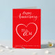 Marque um aniversário memorável com esta carta elegante. Apresentando um fundo vermelho brilhante, um coração central e um monograma personalizável em escrita branca, este cartão pode ser personalizado com nomes, datas e mensagem sincera para marido especial, esposa, parceiro ou para um casal feliz!