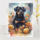 Cartão Rottweiler de Halloween com Abóboras Assustador