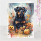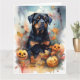 Cartão Rottweiler de Halloween com Abóboras Assustadoras
