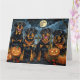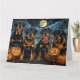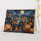Libere o espírito assustador com esta design sombria do Dia das Bruxas apresentando um bando de cachorros sob um céu escuro e iluminado, cercado por morcegos voadores e abóboras brilhantes. Perfeito para aqueles que amam um toque de diversão terrível com seus amigos peludos!