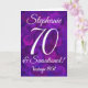 Elegante Purple 70 e Placa Personalizada Sensacional Este é um cartão especial único de aniversário de arte roxa abstrato, especialmente projetado para seus amigos que estão fazendo 70 anos e são sensacionais! Personalize este cartão com o nome e o ano em que foram nasceres. O nome deles também será adicionado ao dentro da placa e você poderá personalizar o dentro com o(s) seu(s) nome(s) como doador de presente/cartão. Emparelhe este cartão com uma garrafa de vinho ou uma boa caneca personalizada da nossa loja! Seu amigo vai adorar esta carta elegantemente projetada.