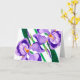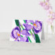 Minha pintura original da cor de água imprimiu em um cartão que caracteriza a flor roxa da íris e duas as flores de brotamento da íris justapor em ângulos diagonais.
