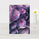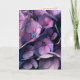 Acima da vista próxima do conjunto roxo vívido da flor do hydrangea com centros azuis. Vazio do cartão para dentro.