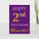 Cartão Roxo, Falso Ouro 2º Aniversário de Casamento + Nom