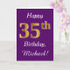 Cartão Roxo, Faux Dourado 35.º Aniversário + Nome Persona
