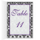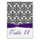 Cartão roxo, preto e branco do número da mesa do