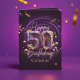 Cartão Roxo sofisticado e 50.o aniversário Dourado