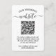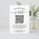 Compartilhe uma de suas fotos de noivado ou casamento e simplifique as respostas de RSVP com cartões de gabinete de código QR modernos de chic. A imagem e todo o texto são simples de personalizar. Para fazer seu próprio código QR usando o gerador, basta digitar o URL do site no modelo. Ao digitalizar o cartão com seus telefones, os convidados são enviados diretamente para o site do casamento para responder ao convite e para obter mais detalhes, como registro, instruções e acomodações. Um processo de rsvp on-line reduz a chance de que as cartas sejam perdidas no correio. Também é mais versátil, na medida em que você pode pedir informações mais detalhadas, como escolhas de refeições, alergias à comida e pedidos de música. Todas as informações de resposta podem ser personalizadas ou excluídas. O design preto e branco apresenta a tipografia moderna minimalista, caligrafia manuscrita, 1 código QR personalizado e 1 imagem da sua escolha. Este cartão faz uma na moda para incluir informações do site com um convite de casamento.