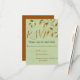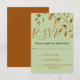 Capture a elegância da natureza com nosso deslumbrante cartão de confirmação de presença de casamento, apresentando um delicado ramo adornado com folhas em um fundo sereno de cor oliva. Perfeito para uma celebração com tema rústico ou botânico.