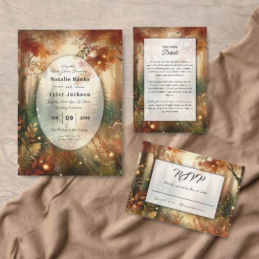 Cartão RSVP Autumn Glow in the Enchanted Forest Wedding