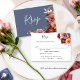 Placa RSVP azul empoeirada Elegante com cor-de-rosa pincelada, marfim, pêssego, burgundy de ouro rosa e rosa de água empoeirada detalhes florais tanto na frente como no verso. Fundo azul empoeirado na frente. Capacidade de adicionar opções de refeição ou excluí-la. Parte do nosso casamento e da nossa coleção de eventos "Heaven in Rosa floral and Dusty Blue".
