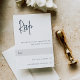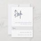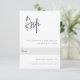 Projetado para combinar com nossos convites de casamento de Script Manuscrito Moderno. Uma bela design baseada na tipografia, com um toque minimalista, com um roteiro manuscrito azul-marinho moderno e uma letra serif clássica. Personalize com a data de RSVP desejada e aceite e recuse a formulação personalizada alinhada à direita inferior.