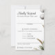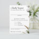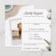 Um cartão de resposta simples e pontual com espaço para 3 opções de comida e uma linha para uma solicitação de música ou alergia de comida. Temos todo o prazer em personalizar ainda mais esta questão, por favor, sinta-se à vontade para nos enviar uma mensagem de assistência.