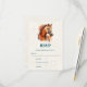 Um cartão RSVP com uma bela ilustração. Cabeça e corpo superior de um cavalo castanho de cobre castanho. Com manchas de aquarela atrás.