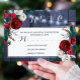 Burgundy elegante russa e rosa de peônia branca resposta ao convite de casamento Rsvp num fundo azul-marinho escuro de madeira com cordas de luzes cintilantes. ++++++++ Correspondência disponível na suíte.