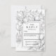 A refined monochrome floral design featuring hand-drawn peonies, roses, and a graceful ribbon framing the text. The detailed linework and architectural background give this piece a sophisticated, timeless look — ideal for elegant, classic, or modern black-and-white weddings.