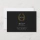 Cartão RSVP Black gold monogram meal option wedding QR code