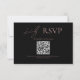 O amor moderno merece um cartão RSVP moderno. Esta elegante placa RSVP de casamento preto apresenta um layout minimalista limpo com tipografia de eterno e código QR. Ideal para temas de casamento contemporâneos, românticos ou de maior escala, o design equilibra simplicidade com calor emocional. Personalizável para seus nomes, data, local e todos os detalhes importantes. Perfeito para casais que querem um anúncio limpo e na moda que dá o tom para um dia significativo e inesquecível. Emparelhe-o com nossos Cartões salve a data, convites, selos de envelopes e muito mais na suíte de coordenação de cheios.