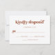 Esta placa de resposta simples e boho rsvp apresenta terracotta, tipografia retrô sobre fundo branco. Coordena-se perfeitamente com o nosso chá de panela retrógrado, chá casal, bat mitzvah ou convites bar mitzvah.