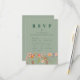 Este cartão de gabinete RSVP de casamento floral de flor selvagem que inclui opções de refeições, números de atendimento e alergias de comida é a adição perfeita ao seu pacote de convite para casamento verde de sábio, projetado para complementar sem problemas o charme de vovô de sua celebração. Apresentando prados à mão com cor d'água em prados silvestres, em tons quentes e autóctones de laranja queimada, terracota, roxo, amarelo, coral, número queimado, pêssego e rosa macio, esta carta adiciona um toque de elegância e capricho. Com um modelo fácil de usar, você pode personalizar facilmente os detalhes de RSVP para seu dia especial. Os belos florais rústicos boêmicos criam uma refinada, mas inspirada na natureza, estética de prados de flores silvestres, enquanto a elegante tipografia verde-escura adiciona um contraste moderno. Projetado com uma obra de arte original por Catherine Sweetman, esta carta de apresentação captura a essência de sua celebração, convidando seus entes queridos a se juntar a vocês em uma celebração quente e inesquecível do amor.