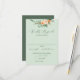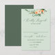 Belos cartões de resposta de RSVP vertical se coordenam perfeitamente com os convites correspondentes nesta coleção para completar o pacote de convites de casamento. Apresentando um elegante e neutro tom pastel com cor aquática, estrutura floral botânica em tons suaves de pêssego, laranja, pincel suave, amarelos e muitos tons de verde de verde sábio a verde brilhante e profundo. Seus detalhes personalizados são exibidos em um layout tipográfico elevado.